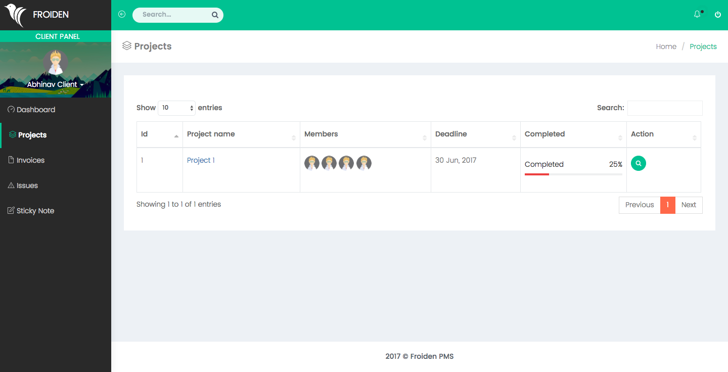 This section shows you the list of all your clients. You can see the details related to the client by click on the client name.