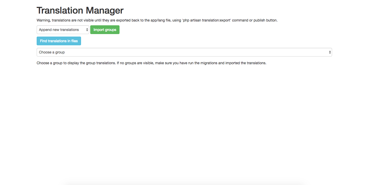 Your all translations are arranged in groups. Choose a group from dropdown to change the translations.