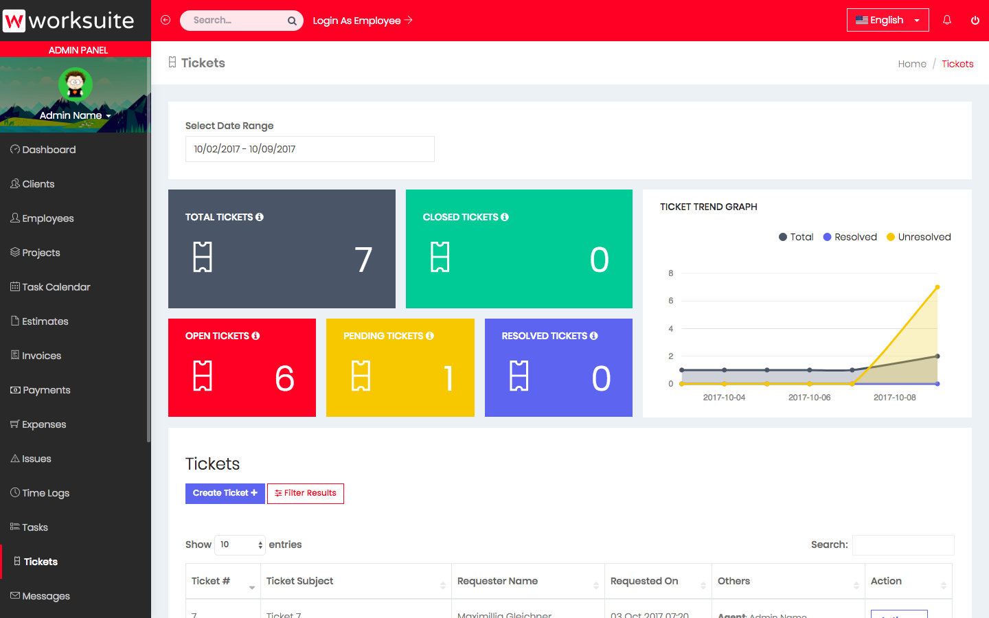 View tickets assigned to employees.